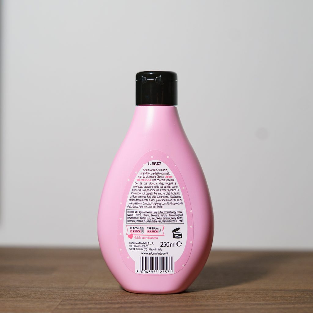 Voda, laurylsulfát amonný, kokamidopropylbetain, chlorid sodný, glycerin, dodekan, parfém, behenamidopropyl dimethylamin, xanthanová guma, slída, benzoát sodný, benzylalkohol, kyselina mléčná, glutamát tetrasodný diacetát, 2CI20oxid titaničitý 0oxid 0.