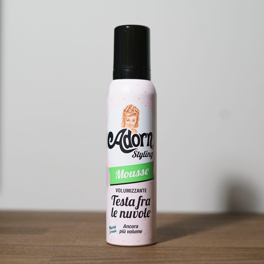 Până la nori și niciodată mai puțin! Spuma pentru păr (mousse) de la brandul italian Adorn ridică părul frumos de la rădăcină, fără umiditate în exces.