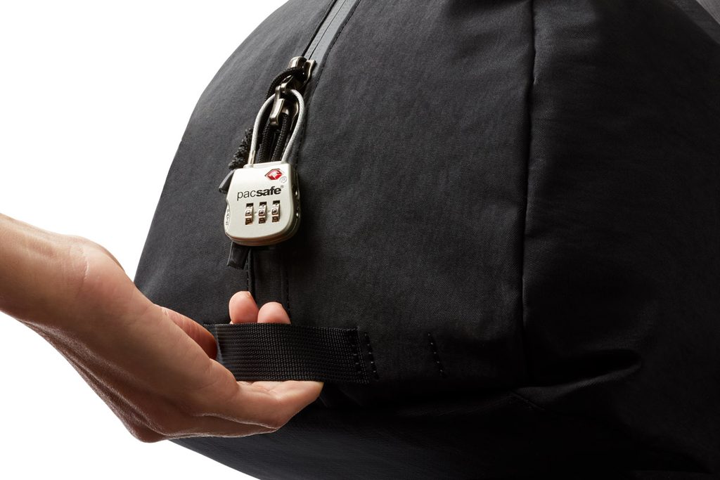 Pe partea din spate veți găsi, în plus, un buzunar exterior mic, cu fermoar, ideal pentru obiecte de valoare și documente pe care trebuie să le aveți mereu la îndemână în timpul călătoriilor de weekend. Întreaga geantă – inclusiv fermoarele – este impermeabilă, fiind realizată din ripstop ușor, dar rezistent.
