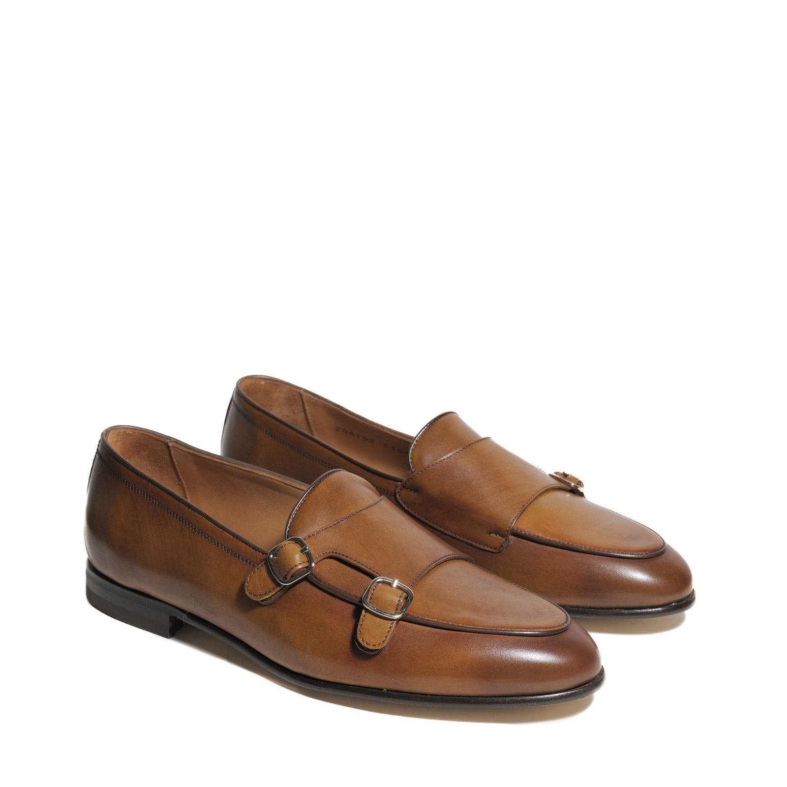 Deși nu au clasica fundiță specifică, putem spune cu deplină încredere că este vorba despre mocasini în stil belgian. Au o siluetă foarte suplă (rămân însă suficient de lați și se mulează foarte rapid pe picior), iar în locul fundiței belgiene regăsim o dublă cataramă decorativă peste rist. Partea superioară este realizată din piele netedă, patinată manual, fiecare pereche având o tranziție cromatică ușor diferită între nuanțe. Talpa este realizată din piele – în zona principală – și din cauciuc Vibram – la toc.