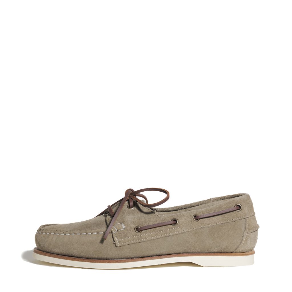 Din punct de vedere estetic, modelul păstrează silueta clasică de boat shoes, cu șiret trecut pe contur și cu cusătură de tip moc toe pe vârf. Construcția este Blake Stitch, iar talpa este din cauciuc, de proveniență italiană.