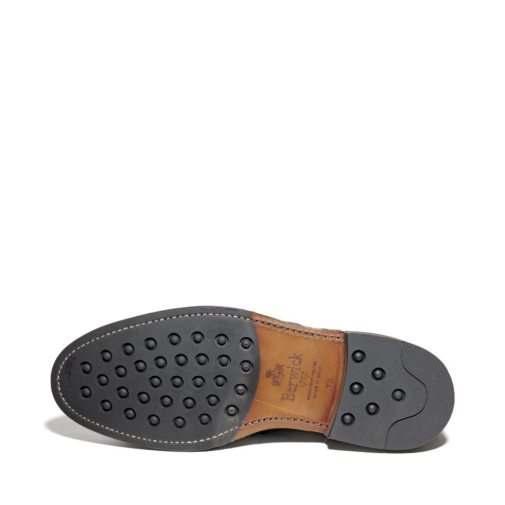 Pantofii Oxford Berwick, ușor atipici, îmbină eleganța britanică cu o execuție spaniolă impecabilă. Perforațiile decorative și vârful wingtip conferă modelului un caracter distinct, în timp ce construcția cu ramă Goodyear Welted garantează durabilitate și confort de excepție. O alegere ideală pentru ținute formale sau smart casual.