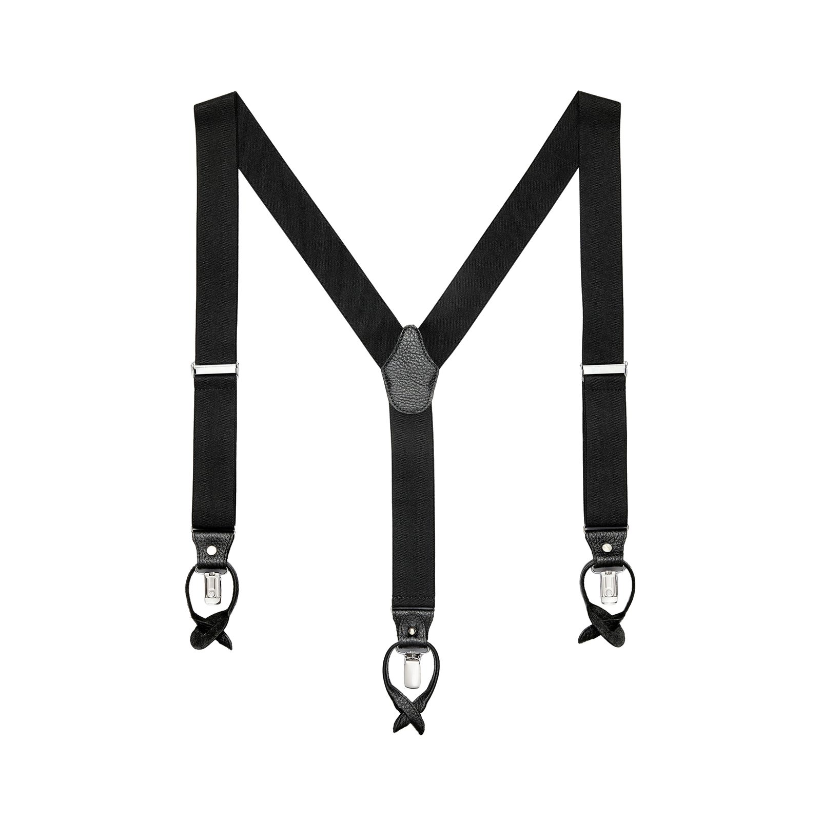 Bretele simple pentru bărbați, cu o închidere combinată, astfel încât pot fi fixate cu un nasture, dacă pantalonii îl au, sau cu o cataramă metalică mai obișnuită. Nu vă faceți griji, au trecut vremurile în care bretelele nu erau la modă!