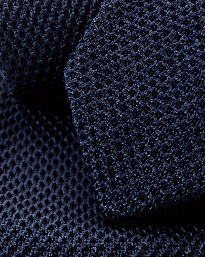 Cravată tricotată tradițional, care prin textura sa plastică vizibilă amintește de clasicele „grenadine” italiene. Această cravată este realizată într-un croi mai îngust – în punctul cel mai lat măsoară doar 6,5 cm – fiind astfel ideală pentru bărbați mai înalți sau pentru costume cu o croială mai strânsă.