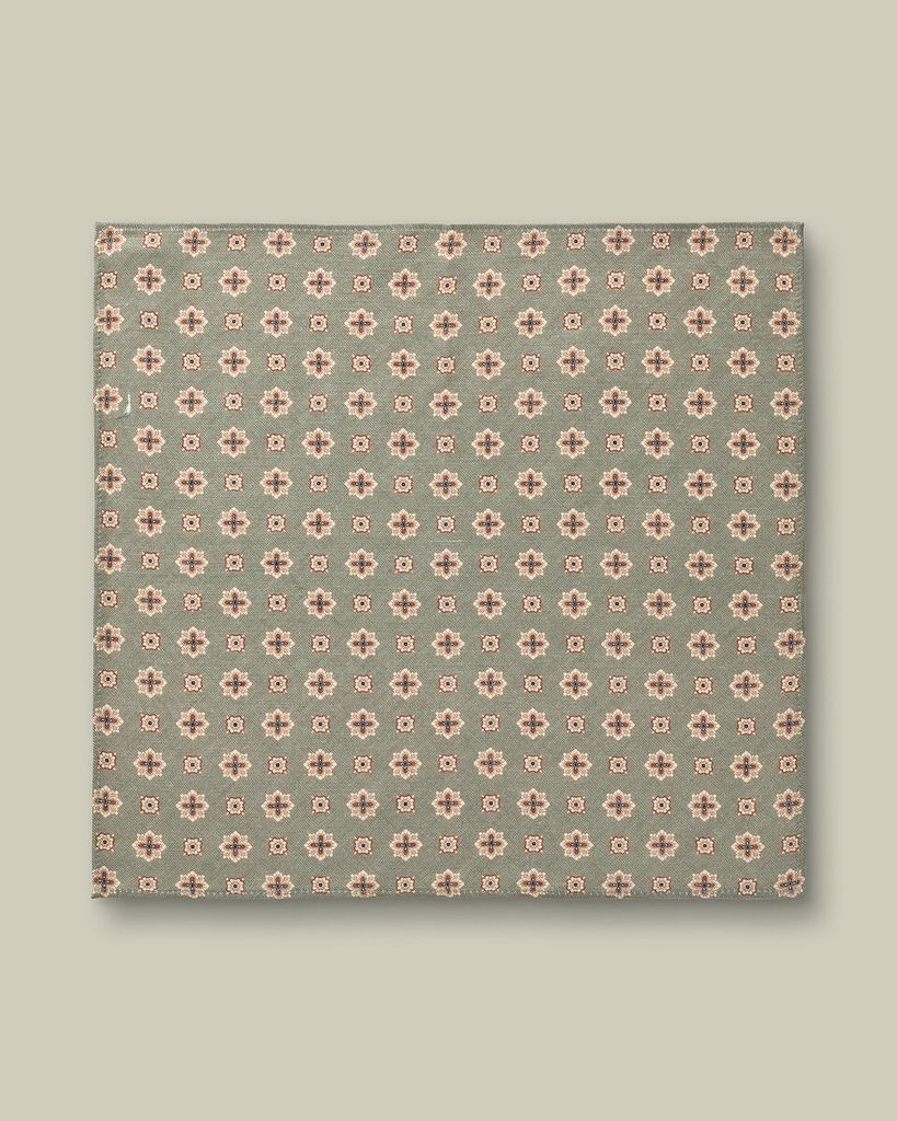 Charles Tyrwhitt Linen/Silk Geo Print Pocket Square — Mid Green