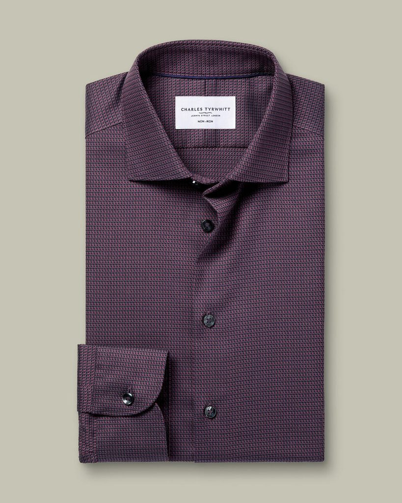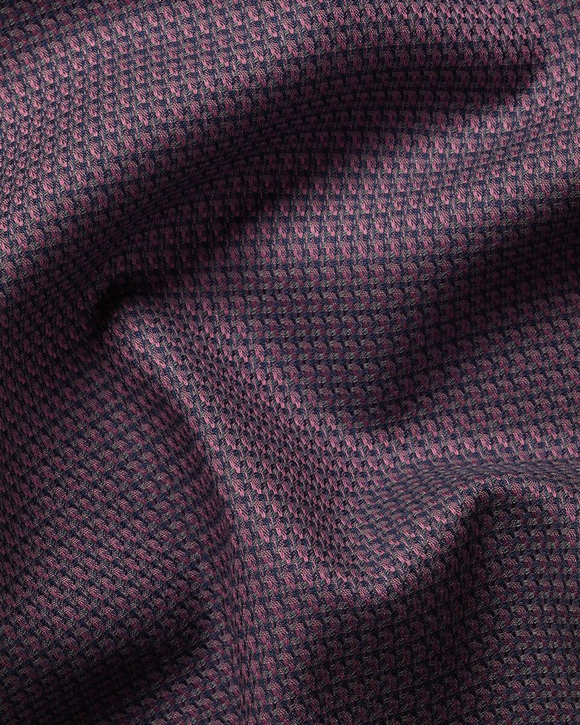 Cămașă office în nuanță închisă, care emană caracter. Elementul dominant al acestei piese este, fără îndoială, modelul discret integrat în textura întregii suprafețe, așa-numitul dobby weave. Dincolo de acest motiv distinctiv, dar deloc ostentativ, rămâne o piesă clasică de încredere: guler deschis standard, mâneci lungi cu manșete prevăzute cu nasturi clasici și terminații elegant rotunjite. Nu lipsește nici finisajul fără călcare, datorită căruia întârzierile la birou devin doar o amintire.