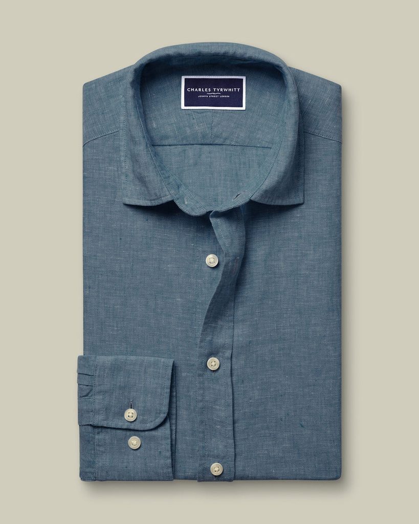 Charles Tyrwhitt Pure Linen Shirt — Airforce Blue XXL