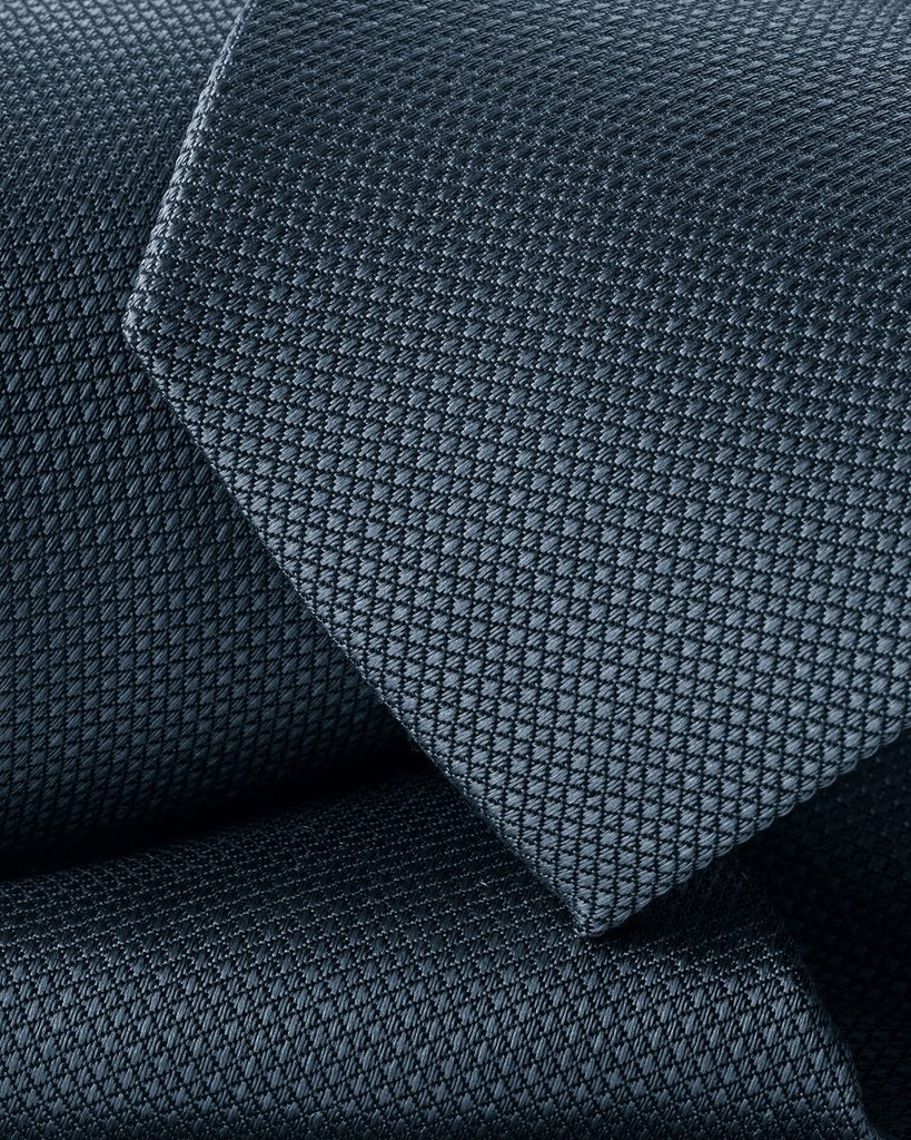 Cravată din mătase, impecabil realizată, a cărei textură fin punctată este animată de un luciu subtil, ușor opulent. Nuanța de albastru, elegant echilibrată, este alegerea ideală atunci când doriți să adăugați sacoului o notă de personalitate, fără ca modelele bogate să intre în conflict cu restul ținutei. În plus, este „stain-resistant” – petele nu aderă cu ușurință la suprafața sa. (Nu sugerăm că puteți turna fără măsură vin de Porto pe ea, însă un tratament ceva mai puțin delicat îl suportă.)