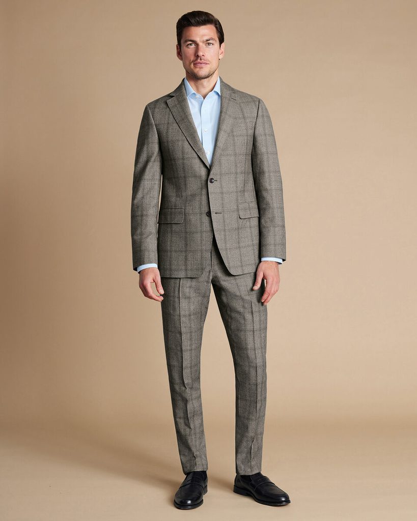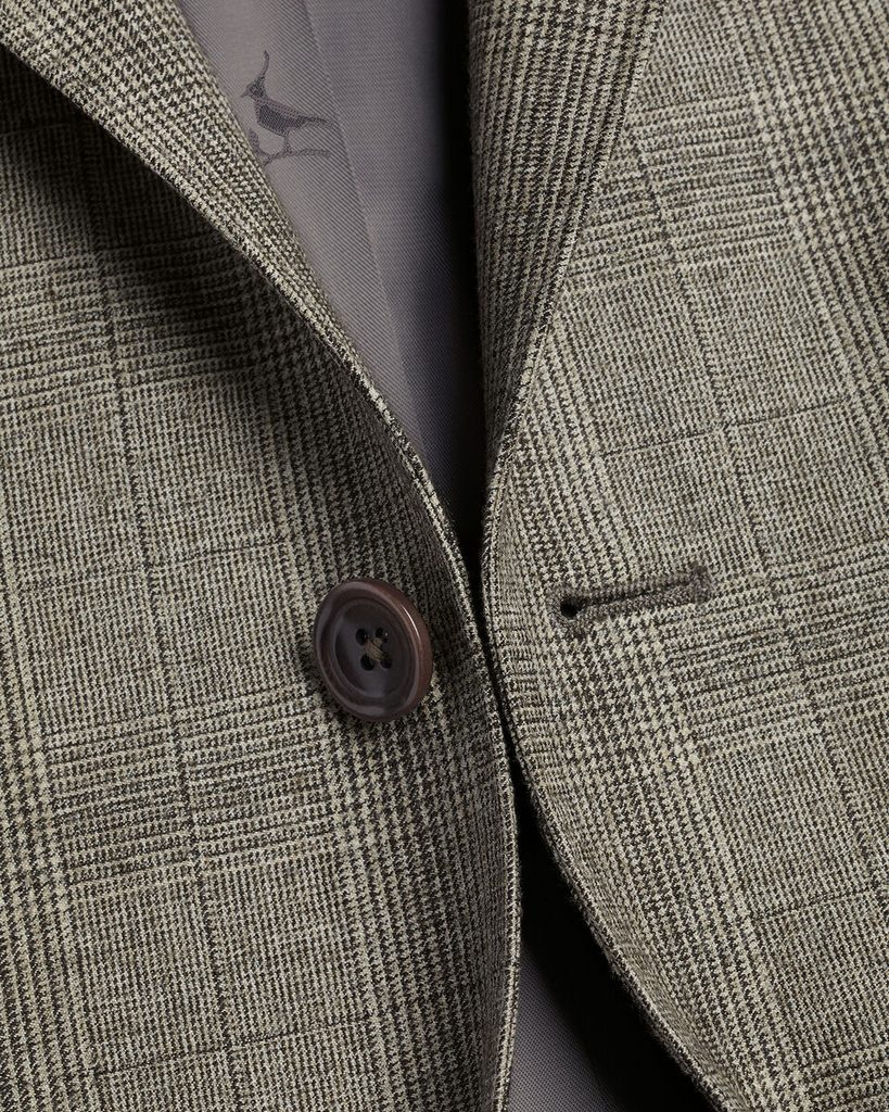 Sacou premium de culoare gri închis, realizat din lână – surpriză! Producătorul cult Charles Tyrwhitt a folosit lână merino Super 120s, un fir mai fin, pentru sacoul Ultimate Performance Check. Este cusut în țesătura birdseye weave și dominat de un model specific de carouri, Prince of Wales check (sau Glen weave), devenit popular în prima jumătate a secolului 20, mai ales de către urmașii la tron. Sacoul are o căptușeală gri fină și se închide cu două butoane clasice.