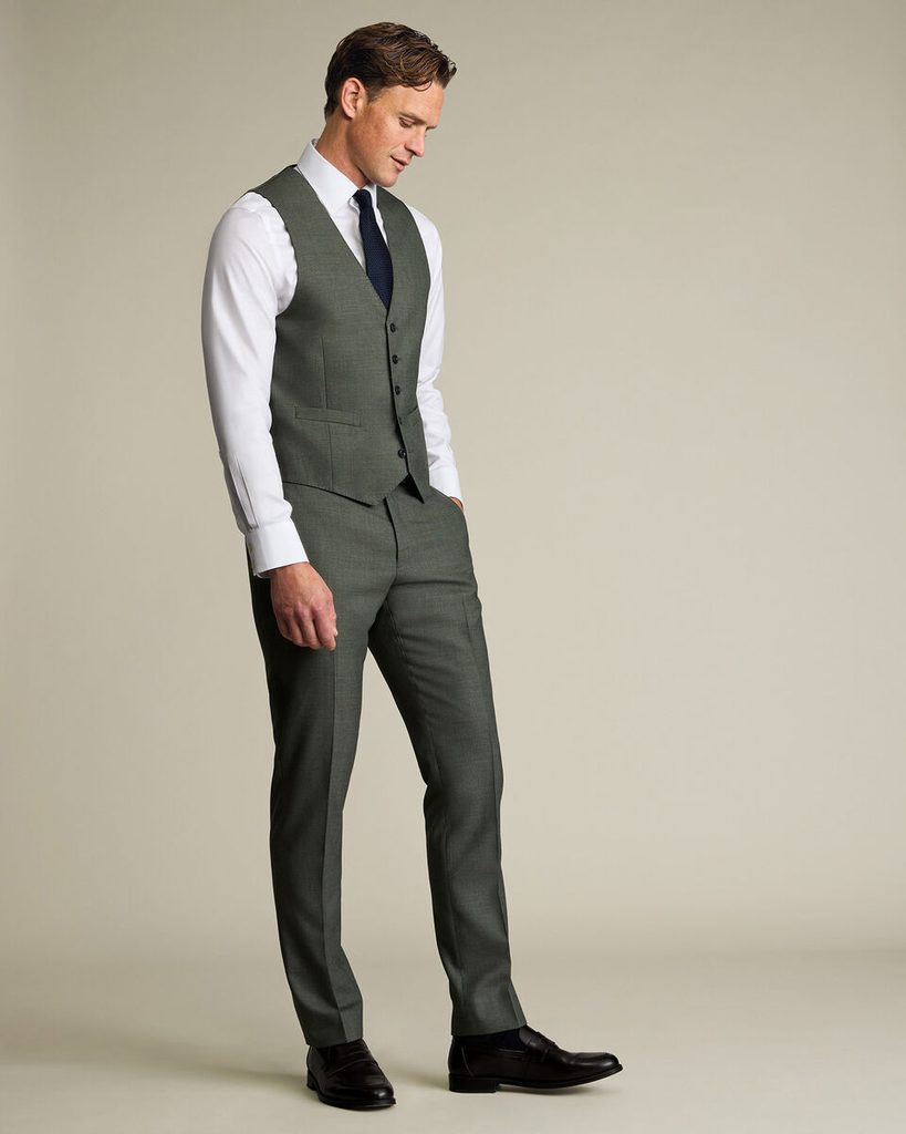În practică, aceasta oferă costumului un aspect mai dinamic și mai profund decât lâna monocromă obișnuită, fără a deveni ostentativ sau strident. În varianta de lână Super 120s, luciul rămâne subtil, iar materialul își păstrează foarte bine forma și rezistă șifonării.