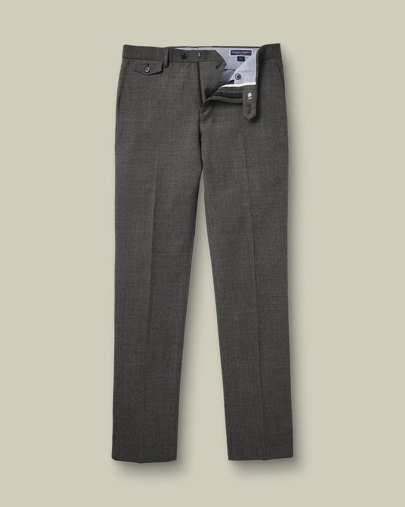 Pantaloni formali Charles Tyrwhitt în nuanță gri închis, cu o croială modernă ce combină eleganța cu libertatea de mișcare. Au un aspect rafinat, dar deloc rigid – ideali pentru bărbatul care dorește să arate impecabil de la ședința de dimineață până la drinkul de seară.