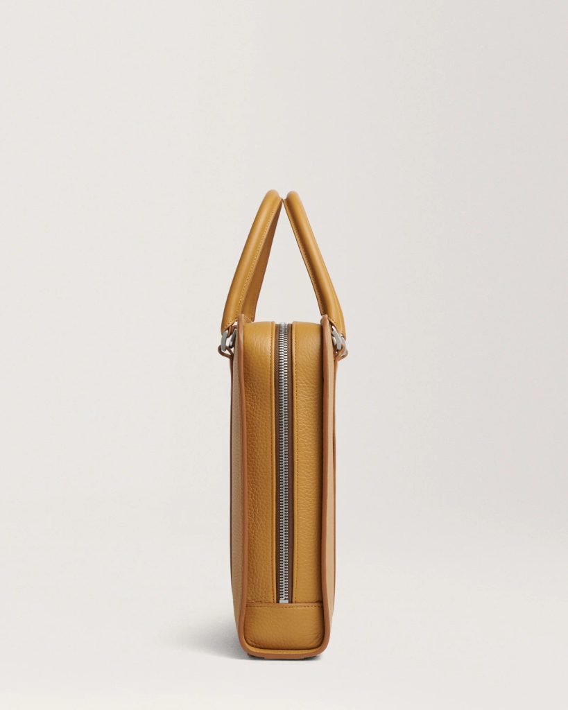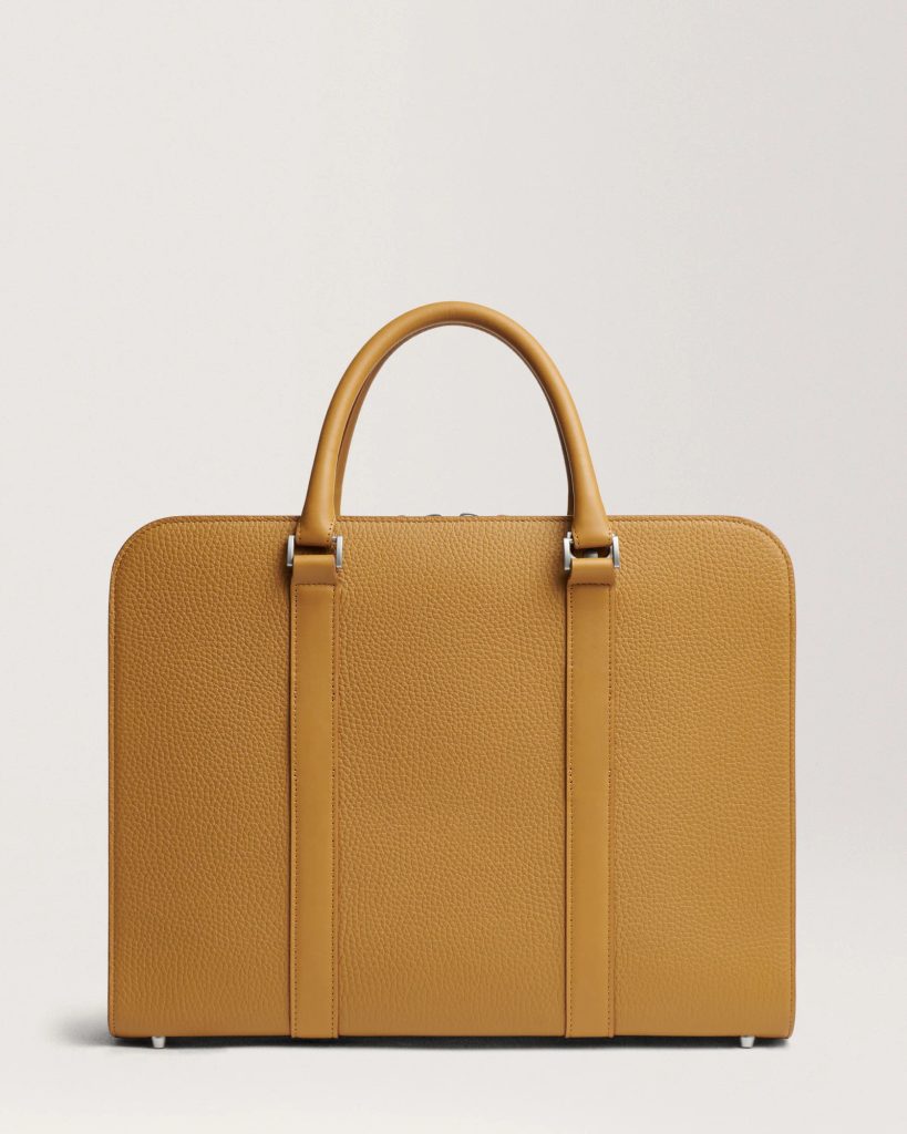 Această piesă – a noastră acum, dar poate în curând și a ta – este realizată manual în Italia, nu departe de Napoli, de către compania suedeză Carl Friedrik. Datorită atenției lor deosebite la detalii, geanta impresionează și prin compartimentarea interioară practică: compartimentul principal, închis cu un fermoar italian lustruit manual, poate găzdui un laptop de până la 15” și alte accesorii de lucru. Geanta mai include o curea de umăr de lux, detașabilă, și un suport practic din piele pentru fixarea ușoară pe bagajul de călătorie.