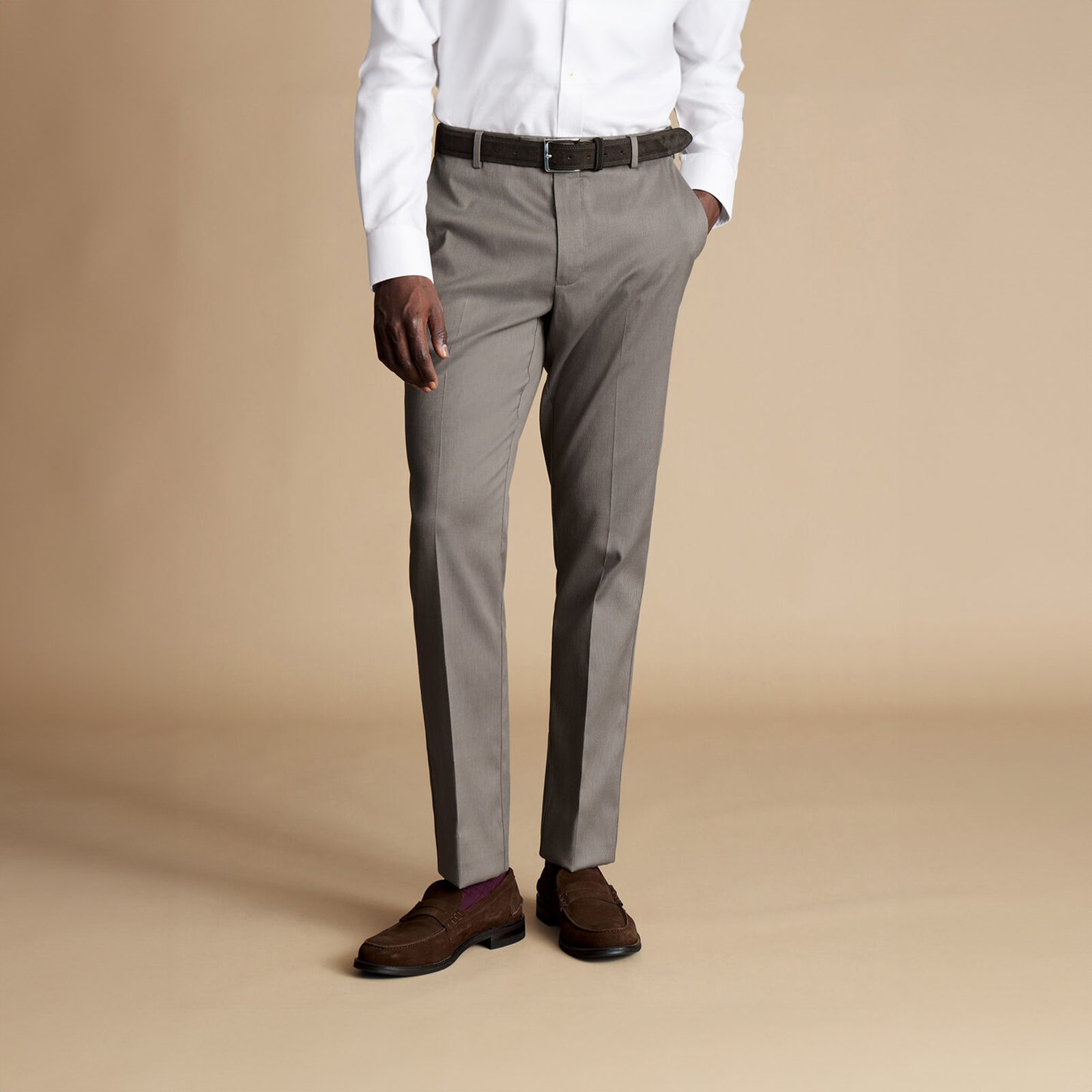 Promoţie 50 % Charles Tyrwhitt Smart Stretch Texture Pants — Mocha Pantaloni eleganți, cu croială suplă și elasticitate discretă