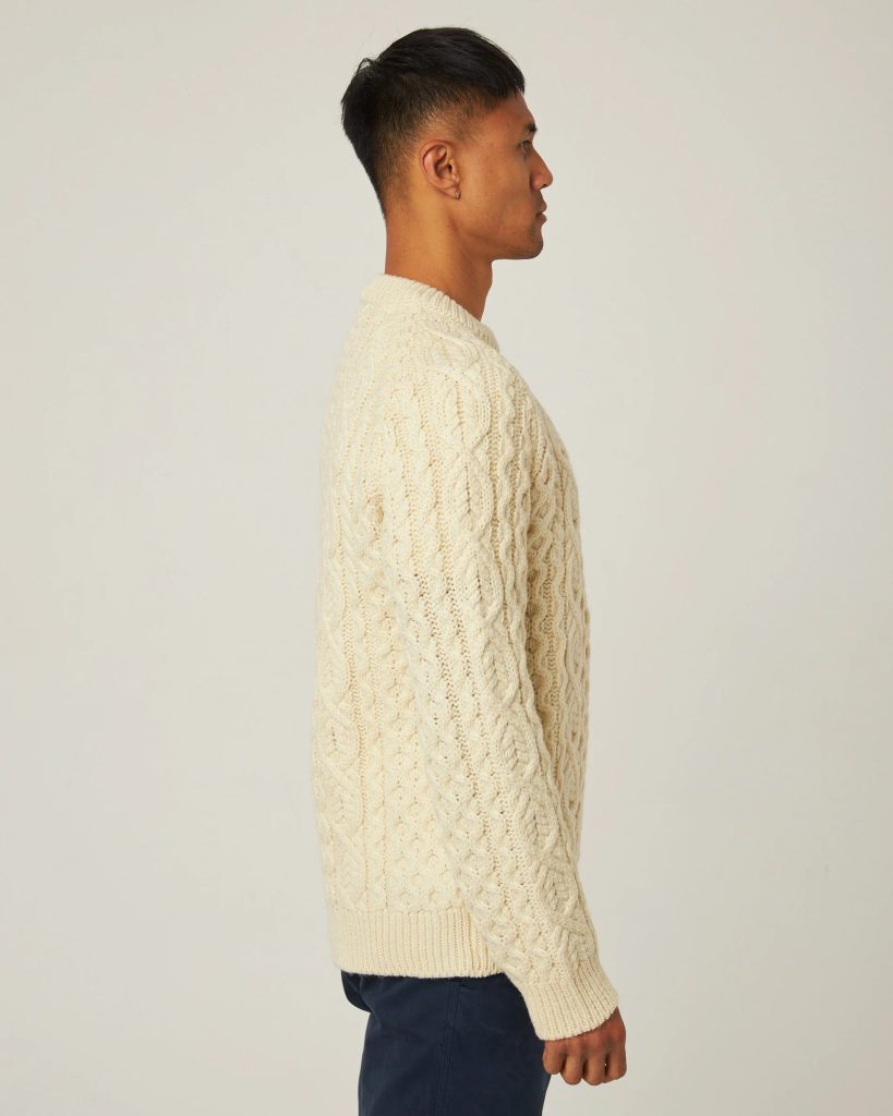 Geansaí Árann. Ceea ce poate suna ca o incantație este, de fapt, denumirea irlandeză a puloverelor tradiționale născute printre fermierii și pescarii de pe Insulele Aran, în golful Galway. Astăzi, aceste articole vestimentare, apărute la sfârșitul secolului al XIX-lea și începutul secolului XX într-o comunitate de aproximativ 3.000 de oameni, sunt cunoscute în întreaga lume. La această notorietate a contribuit și compania de familie Peregrine, renumită și în magazinul nostru pentru edițiile sale regulate de pulovere Aran.
