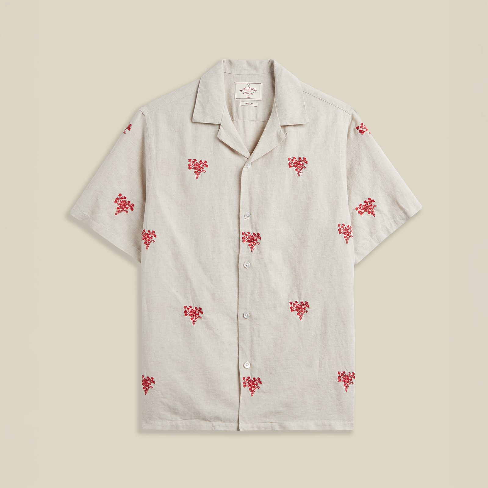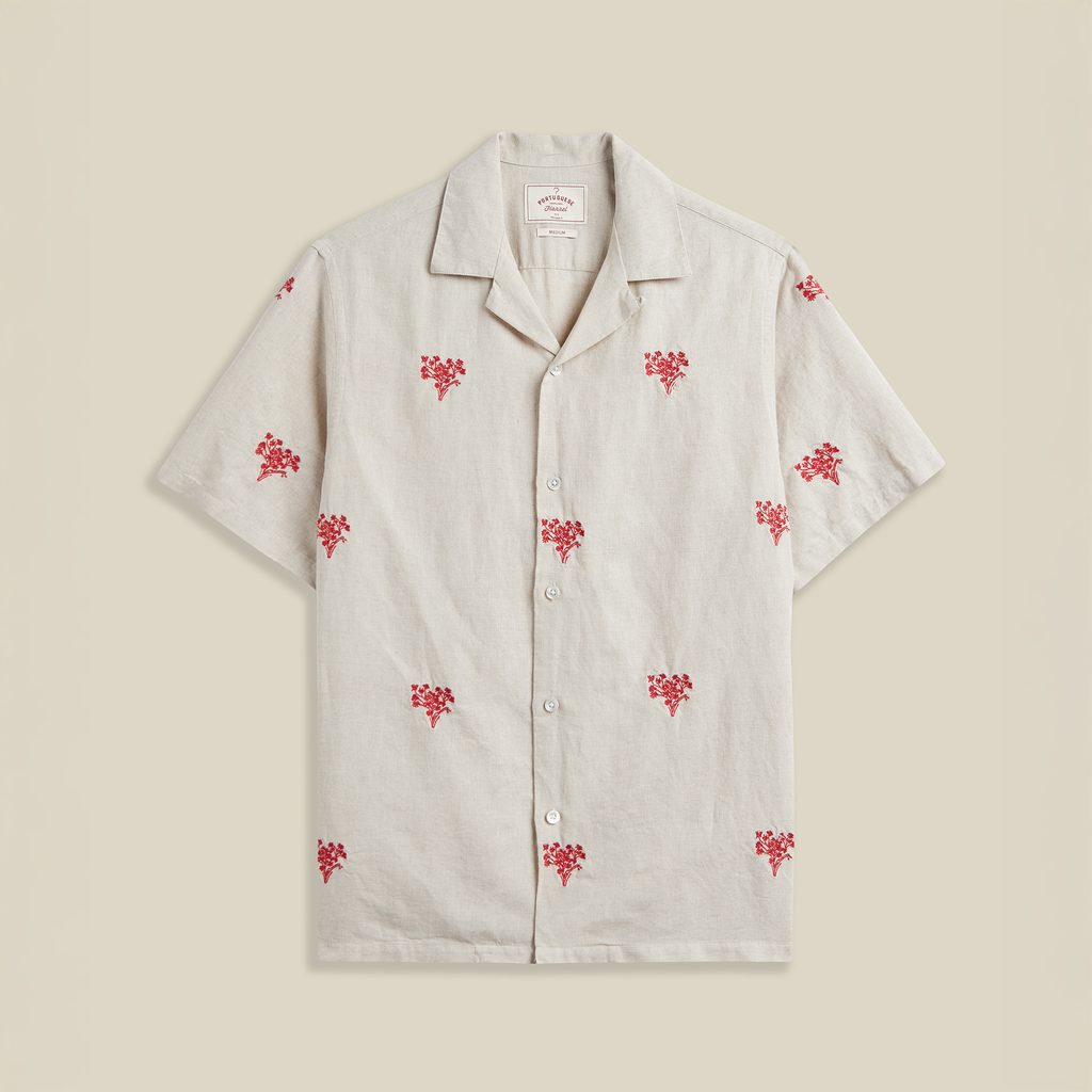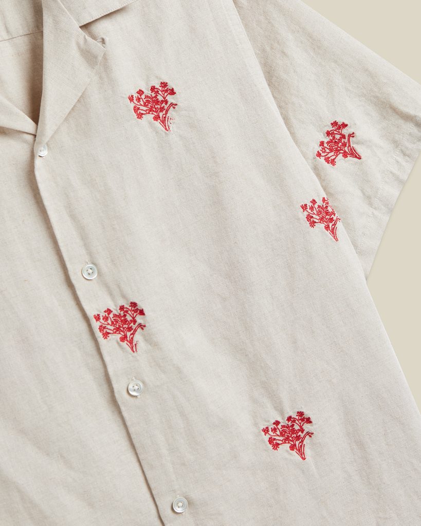 Cămașă ușoară, cu mânecă scurtă și guler plat, care îmbină un aspect estival relaxat cu un model delicat de mici broderii dispuse pe întreaga suprafață. Are o expresie firească, dar suficient caracter pentru a deveni piesa centrală a ținutei. Gulerul deschis subliniază silueta lejeră și conferă cămășii un aer natural de vacanță.