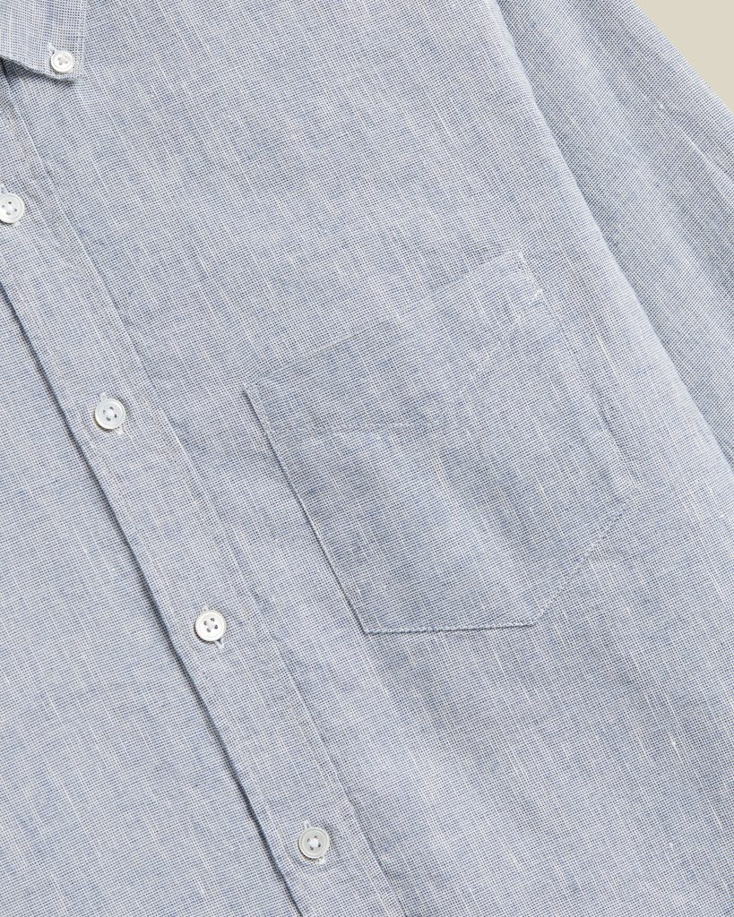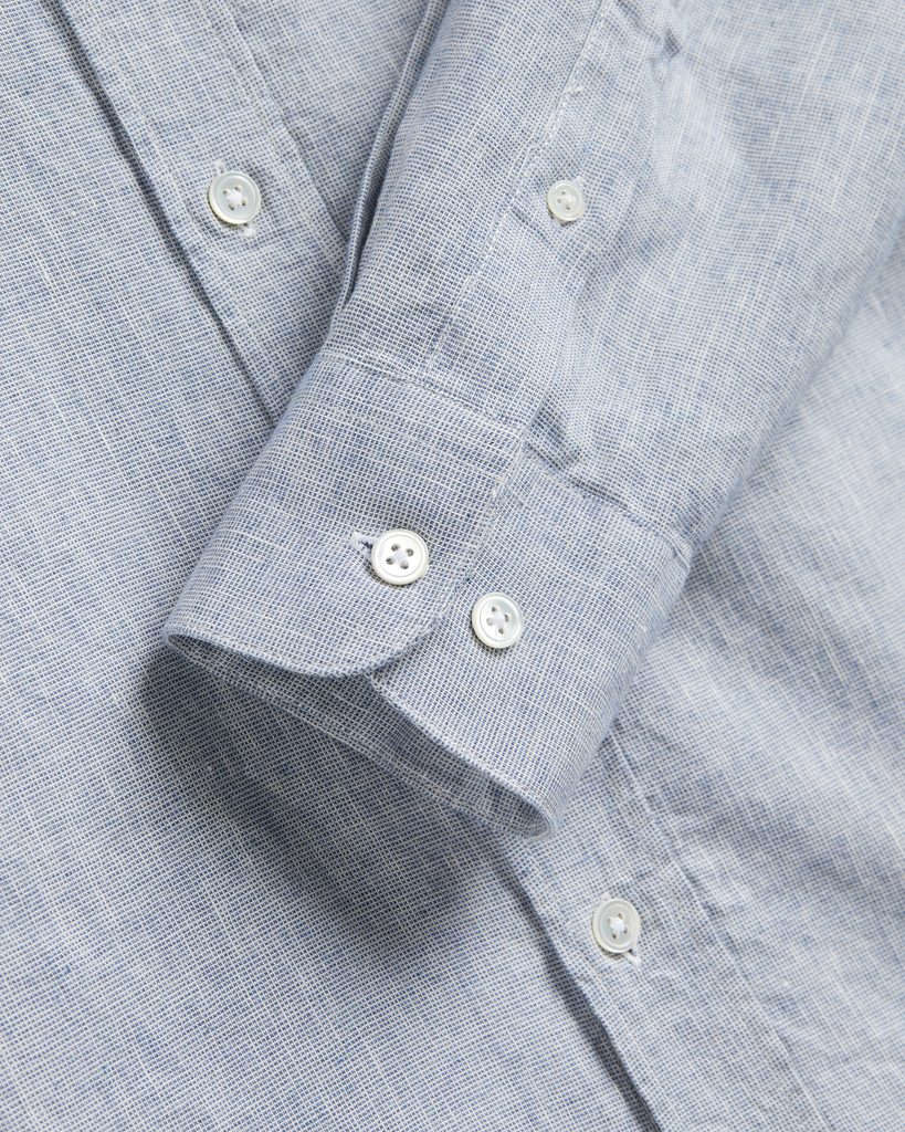 Simplă, lejeră, no-nonsense, cămașă de vară din amestec 50/50 de in și de bumbac. Astfel, se îmbină lejeritatea și respirabilitatea inului cu rezistența bumbacului și – să recunoaștem – cu o șifonare considerabil mai redusă. Denumirea modelului face trimitere la textura granulată a țesăturii rezultate, care conferă suprafeței un caracter literalmente tactil. Cireașa de pe tort o reprezintă nasturii din perlă naturală.