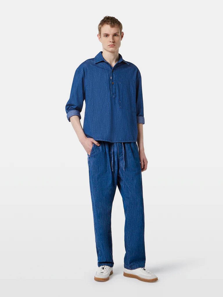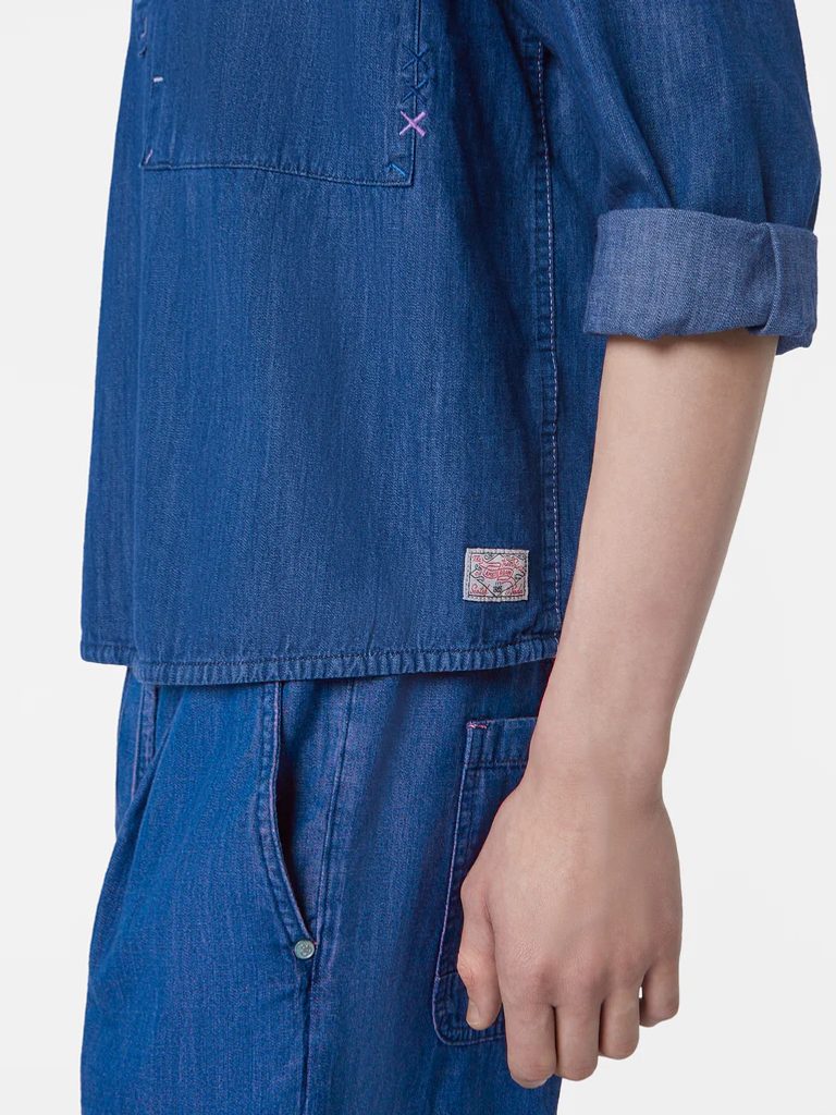 Oricine are în garderobă o cămașă din denim – însă o tunică din denim? Această tunică, adică o cămașă tip polo (cu închidere parțială pe nasturi), este una dintre piesele noi propuse de brandul olandez Scotch & Soda. Se remarcă prin gulerul lat și pronunțat, detaliile decorative tip buzunar la piept și croiala lejeră, amplă, care asigură confort chiar și în zilele călduroase.