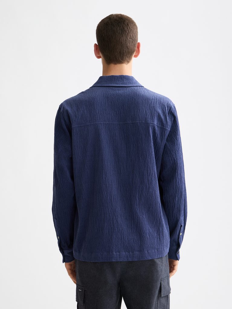Cămașă lejeră cu o notă de stil sportiv, care îmbină confortul cu eleganța naturală. Nuanța bleumarin, fermoarul la gât și croiala relaxată îi conferă un caracter casual rafinat, în timp ce materialul texturat și buzunarele de la piept adaugă un plus de interes vizual. O piesă excelentă atât pentru purtare individuală în zilele mai calde, cât și pentru ținute stratificate.