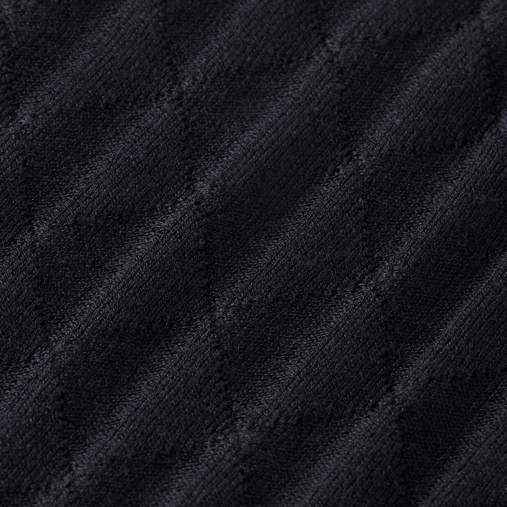 Acest pulover tip maletă nu poate fi descris altfel decât „cu pliuri armonice”. Cu cât coboară mai jos pe corp, cu atât materialul este mai dens pliat, creând un efect de volum rafinat. În combinație cu modelul geometric triunghiular care acoperă întreaga suprafață și în care pliurile se integrează perfect, rezultă o piesă cu o prezență puternică și un caracter aparte. Confecționat dintr-un amestec fin de viscoză și acril, materialul amintește de textura moale a eșarfelor ușoare de calitate.