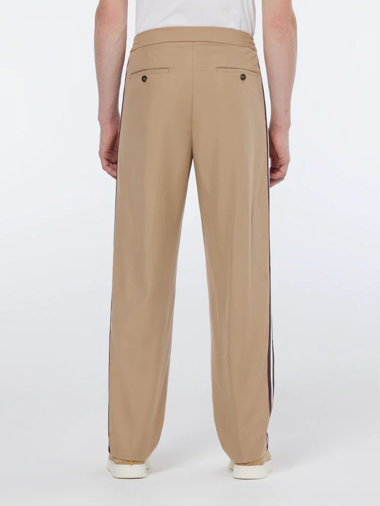 Atât purtați individual, cât și în combinație cu jacheta tip military de la Scotch & Soda, acești pantaloni comozi în nuanță bej asortată reprezintă alegerea ideală pentru un stil relaxat, dar îngrijit. Croiala este confortabilă – nici prea strâmtă, nici prea largă. Fără formalități inutile: se leagă cu un șiret în talie, iar detaliul lateral în stil jogger adaugă o notă sportiv-elegantă.