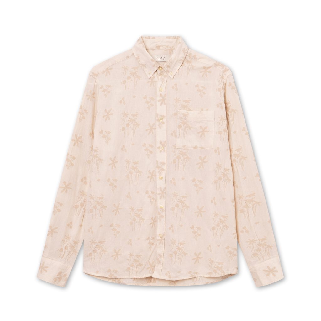 O cămașă de vară cu un model bogat (dar subtil) de la danezul forét. Acest model este un jacquard, inspirat din modelele tradiționale ale țesăturii jacquard.