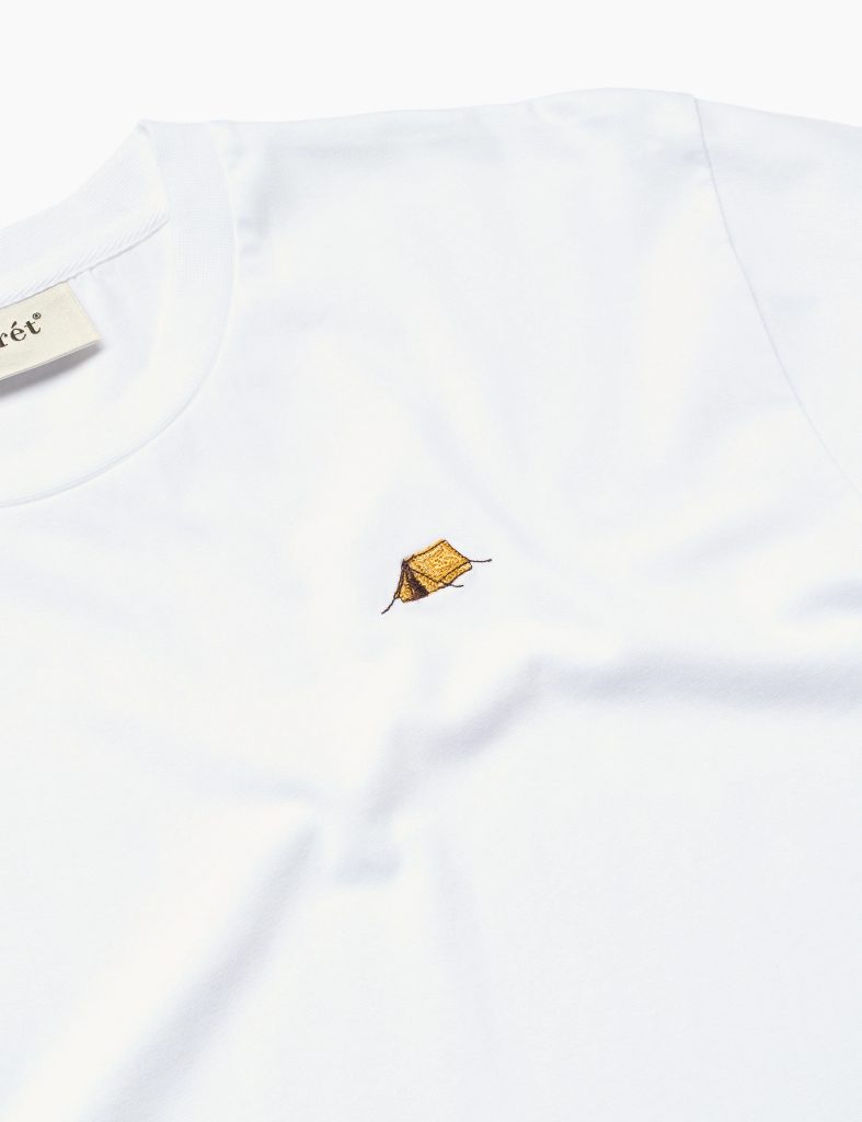 Tricoul alb reprezintă o bază minimalistă a garderobei de vară, construită pe un aspect curat și pe un detaliu discret. Este realizat din bumbac plăcut la purtare, care oferă confort pe durata întregii zile și își păstrează natural forma. Pe partea stângă a pieptului veți regăsi o mică broderie în formă de cort. Datorită croielii clasice, tricoul se asortează cu ușurință cu denim, cu șorturi sau cu o jachetă ușoară și funcționează ca un element versatil pentru timpul liber. (Din cauza culorii, nu îl putem recomanda totuși pentru campare. Poate cel mult pentru glamping.)